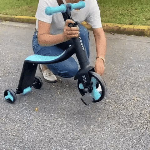 The bike seat can be rotated 360 degrees by pressing the button on it until it turns into a scooter